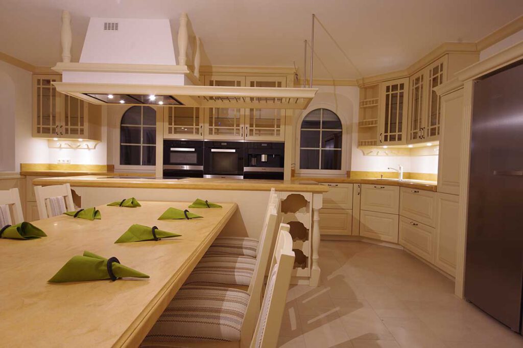 Küchen fertigen wir besonders gern, denn sie sind jedes Mal eine neue und spannende Herausforderung: Jede Küche wird individuell für Sie geplant und hat einen besonderen Akzent. Das kann ein warmer Holzton sein, eine ungewöhnliche Maserung, ein harmonisches Zusammenspiel von Farben und Formen – all dies entwerfen wir immer wieder neu und finden auch die passende Auswahl von Küchentechnik und Ausstattung.